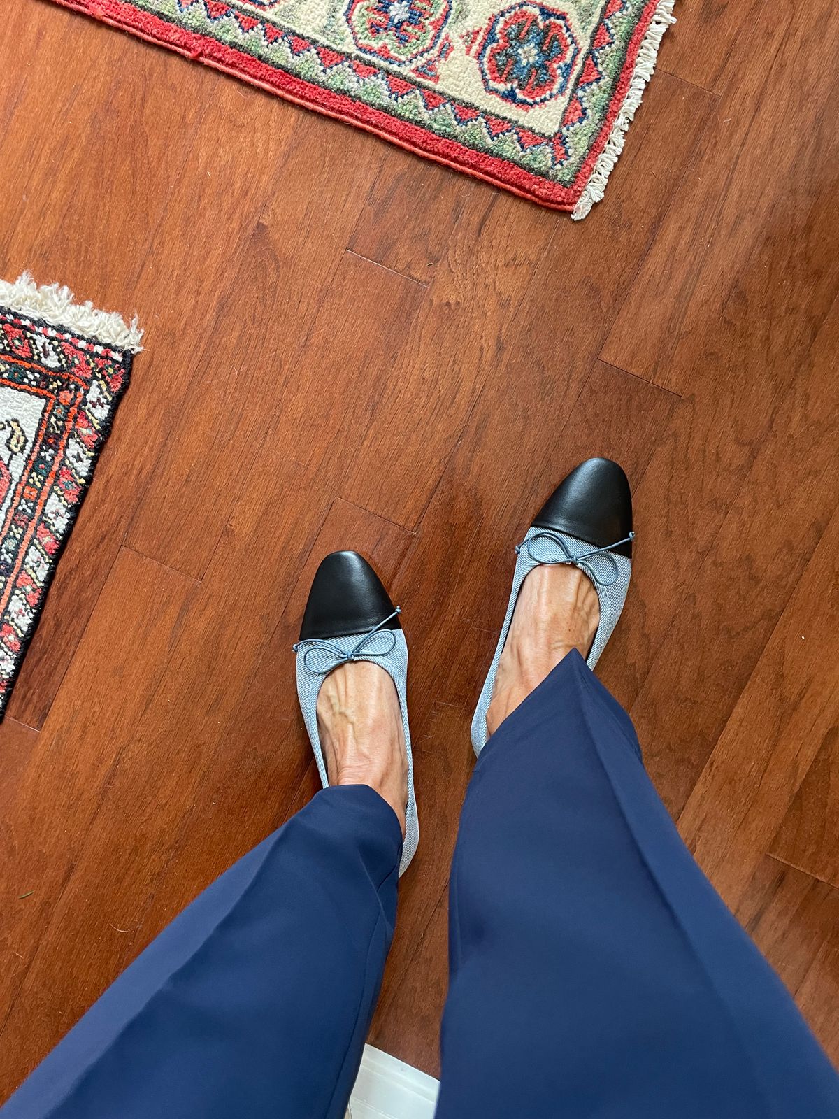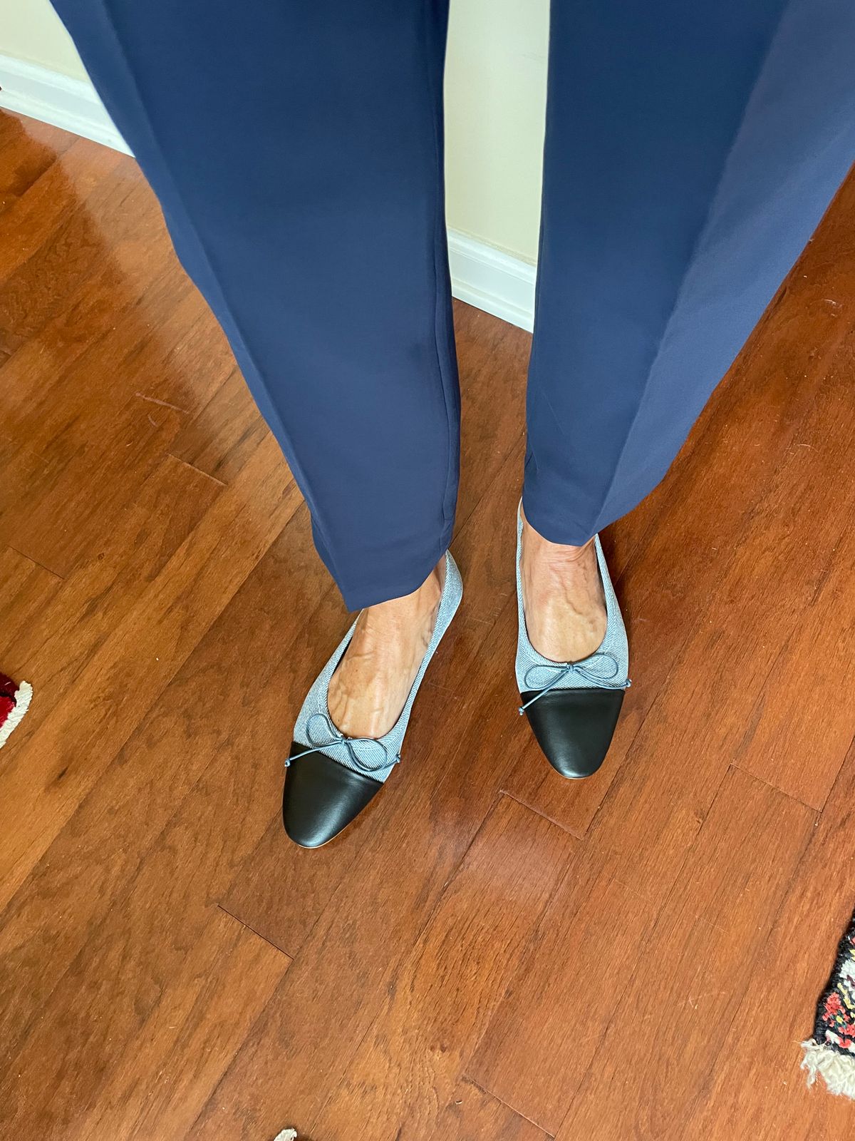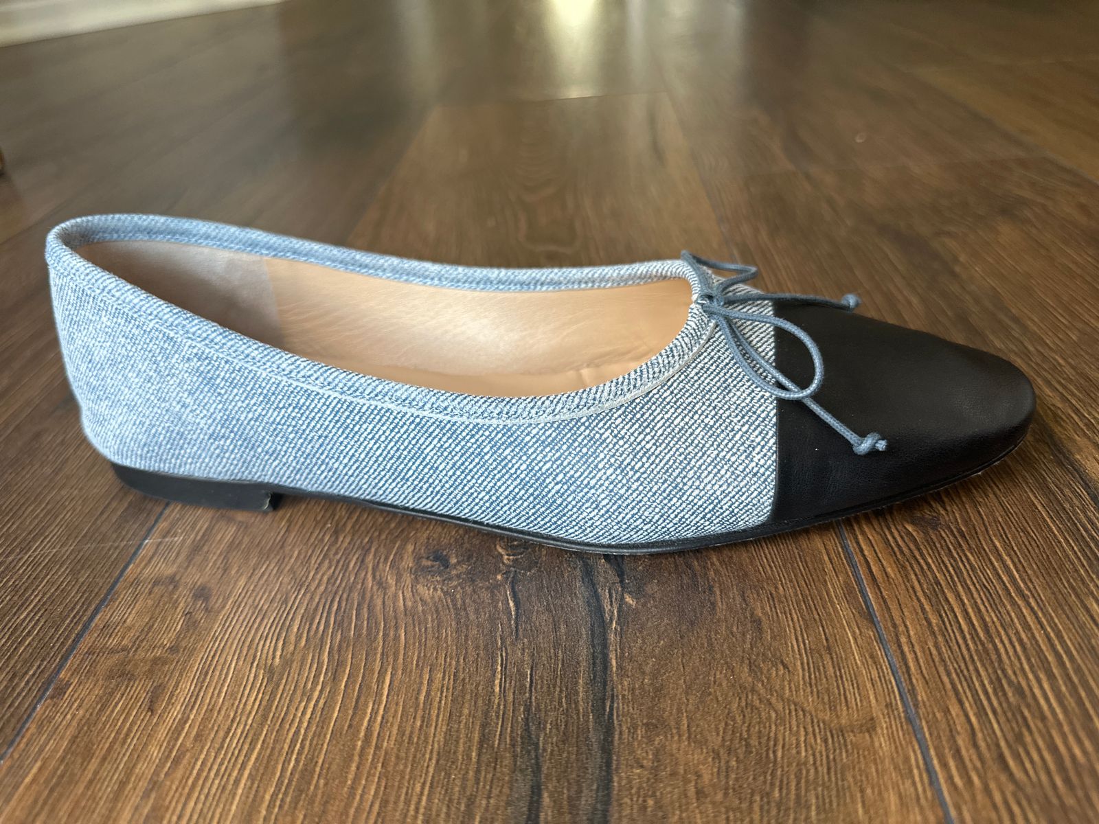 The pattern of the denim printed on the leather is so much more beautiful in person than in photos. The photos in general don’t do the shoes justice - they are super high quality and soft. I took these shoes out of town to Chicago, for the first time, for the weekend and had no issues wearing them to break them in. They were perfect for city walking. You can walk miles in them on first wear. They are so cute with denim. This is my third pair of shoes and will keep buying! I have a narrow foot and they are perfect