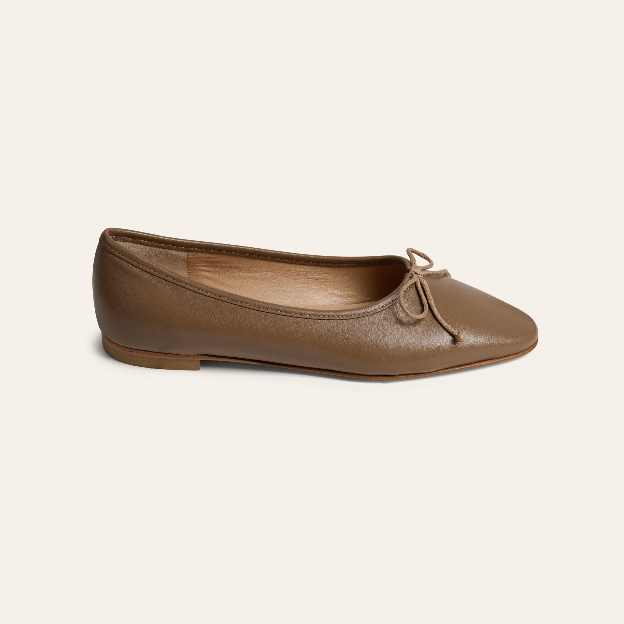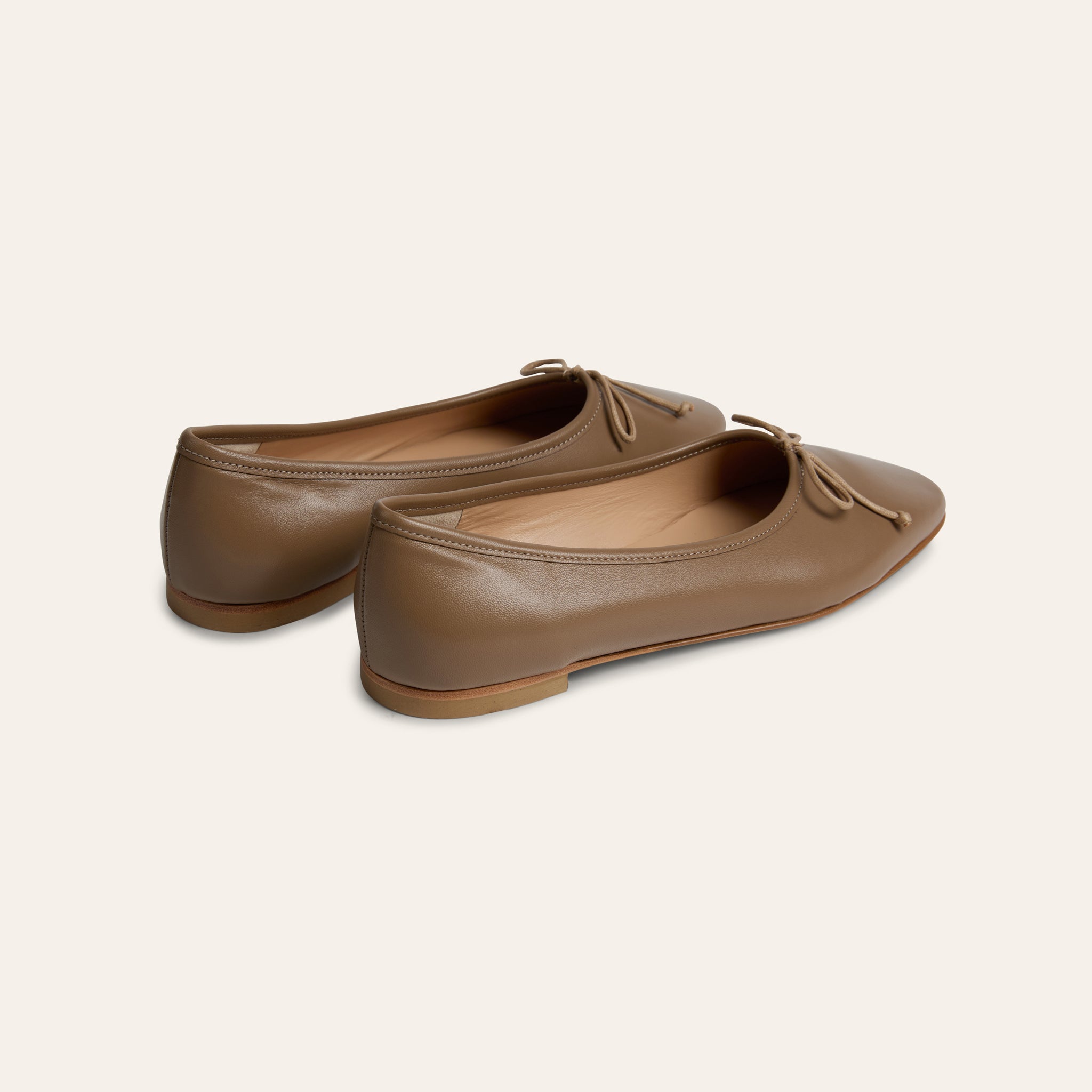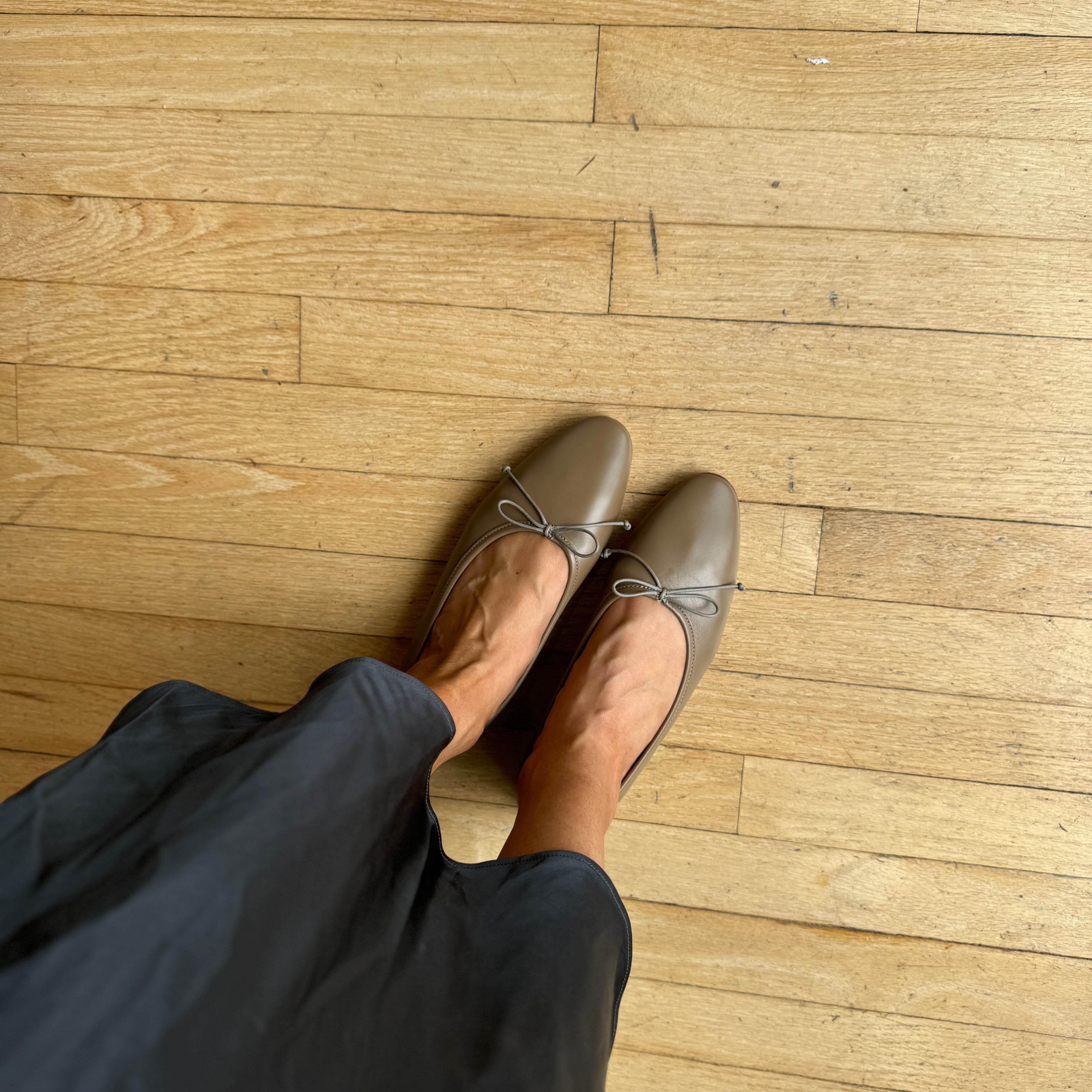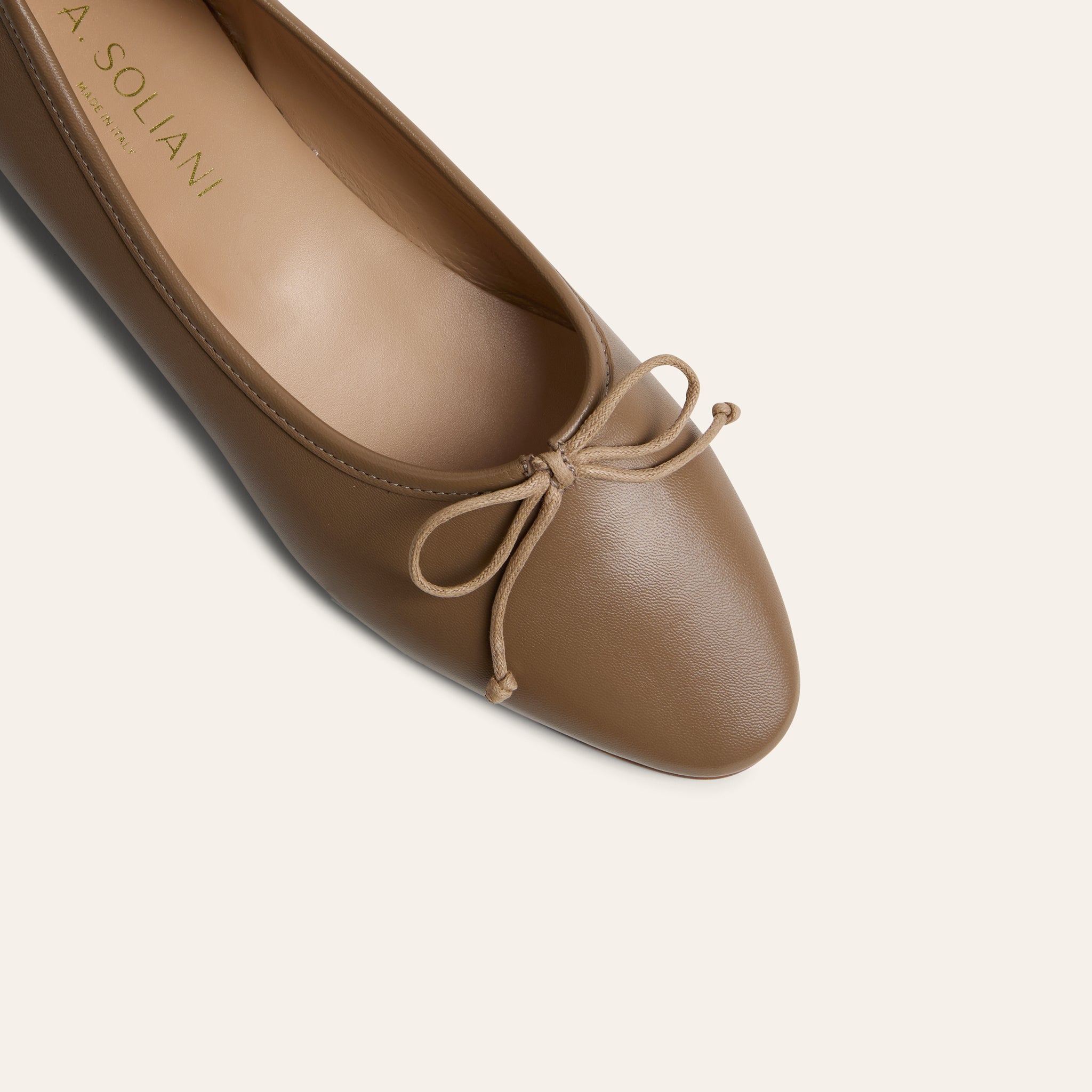 The Como, our new ballerina flat, has a longer toe box and a slim shape that elongate the legs to perfection. The low stacked heel is comfortable for everyday wear, and a cotton bow adds a pretty, feminine touch.